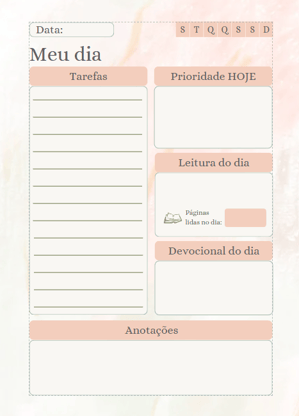 Oferecemos um planner diário digital pronto para impressão, permitindo que você organize sua rotina de forma prática.